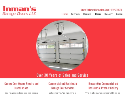 419-423-8318 Inmans Garage Doors LLC Sales Service Findlay OH. Inmans Garage Doors has been in business since the 60s. INMANS GARAGE DOORS-FINDLAY OHIO Findlay OH.